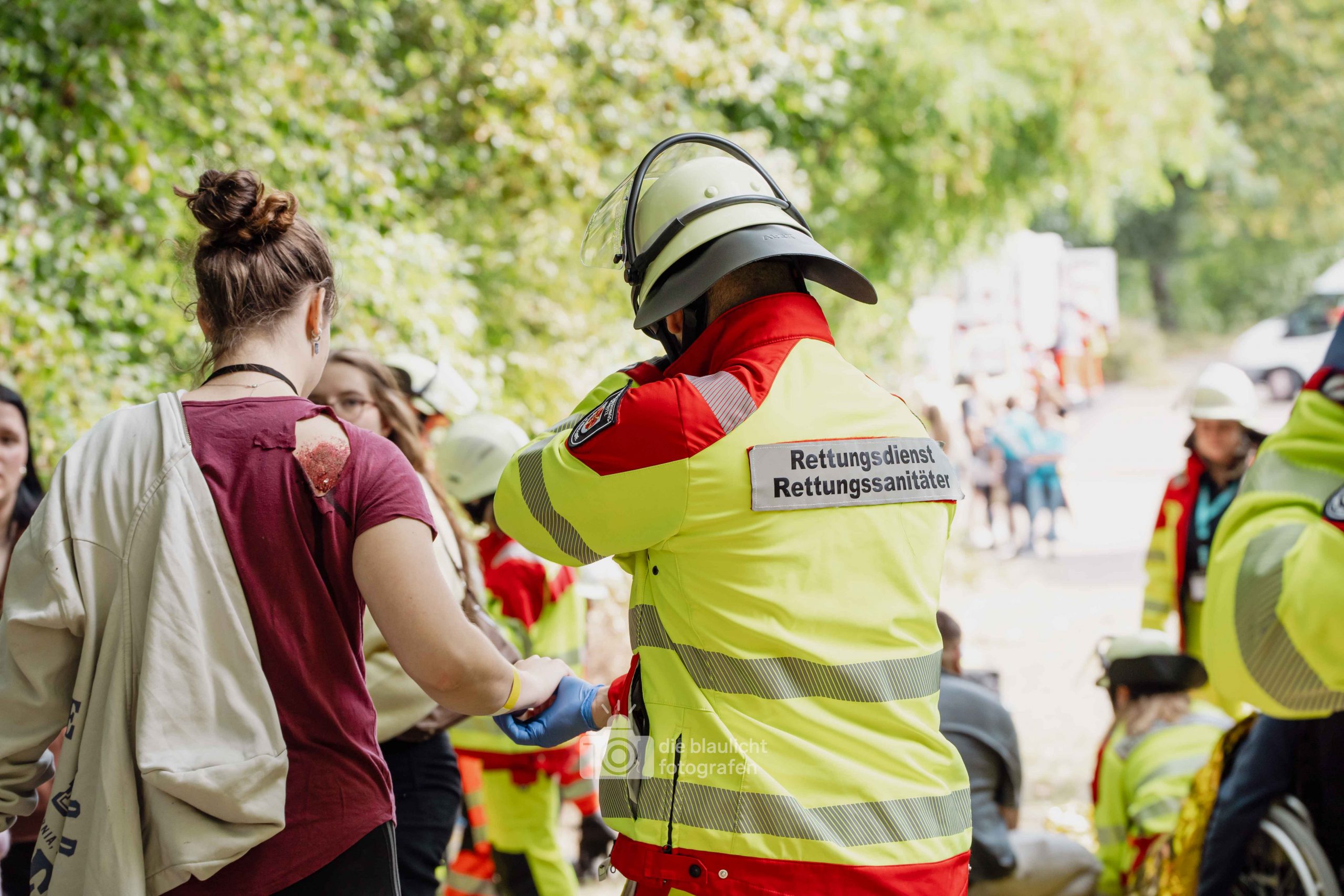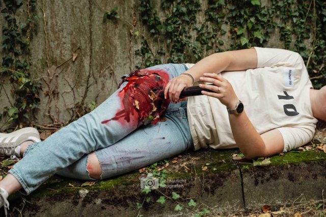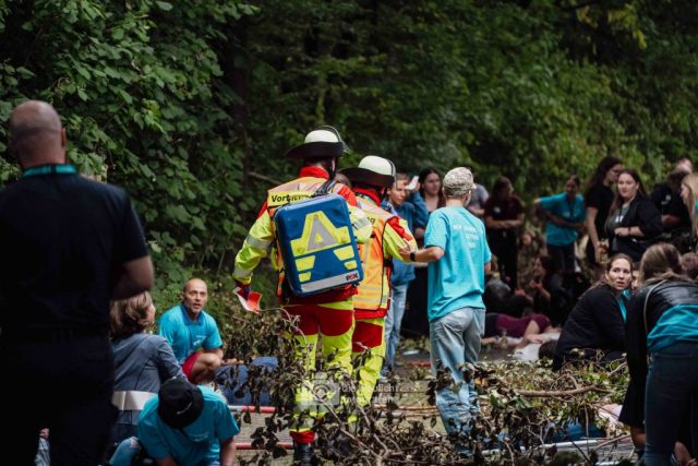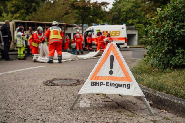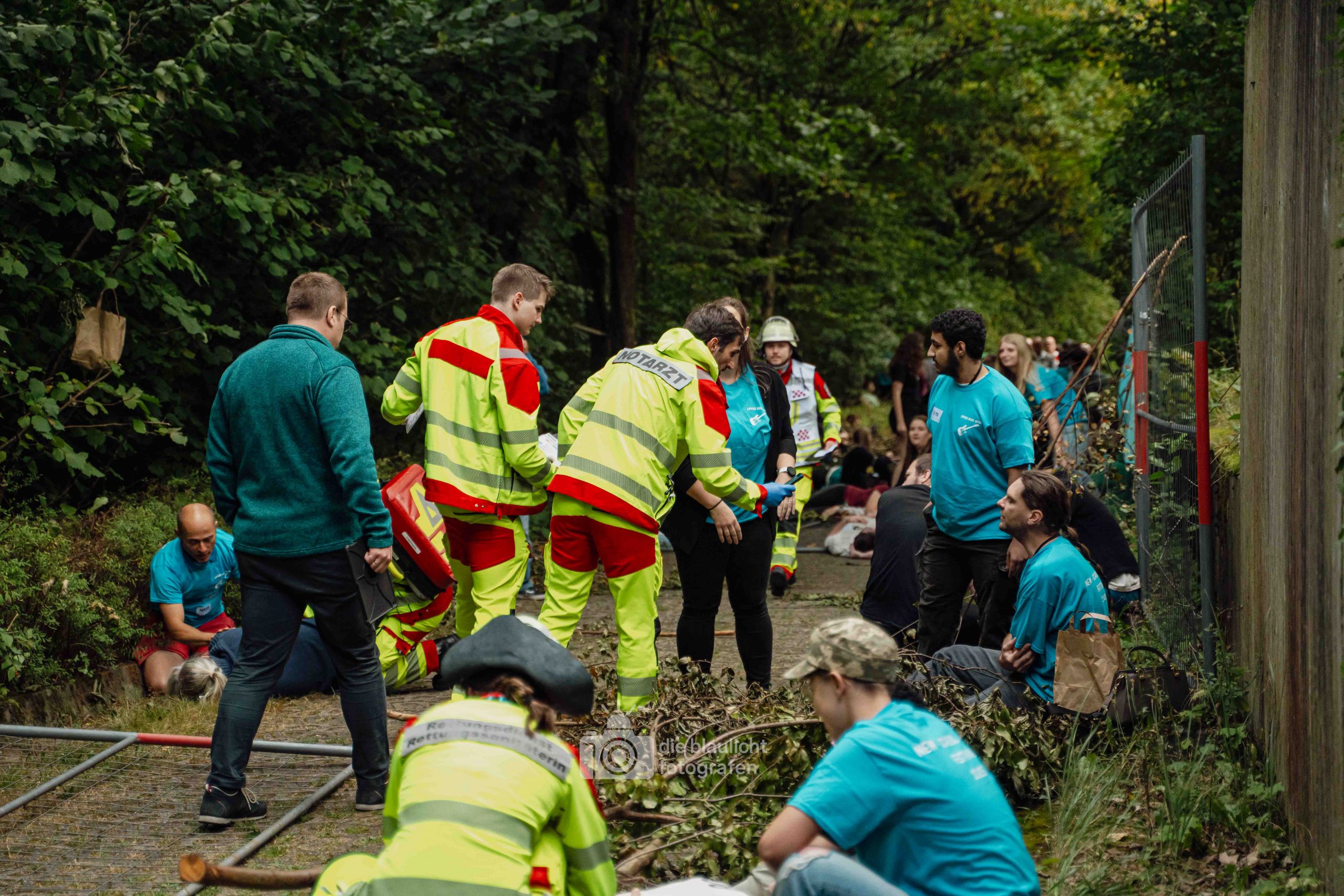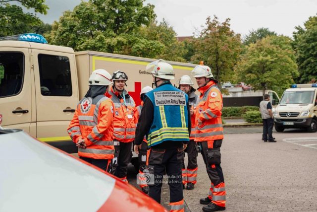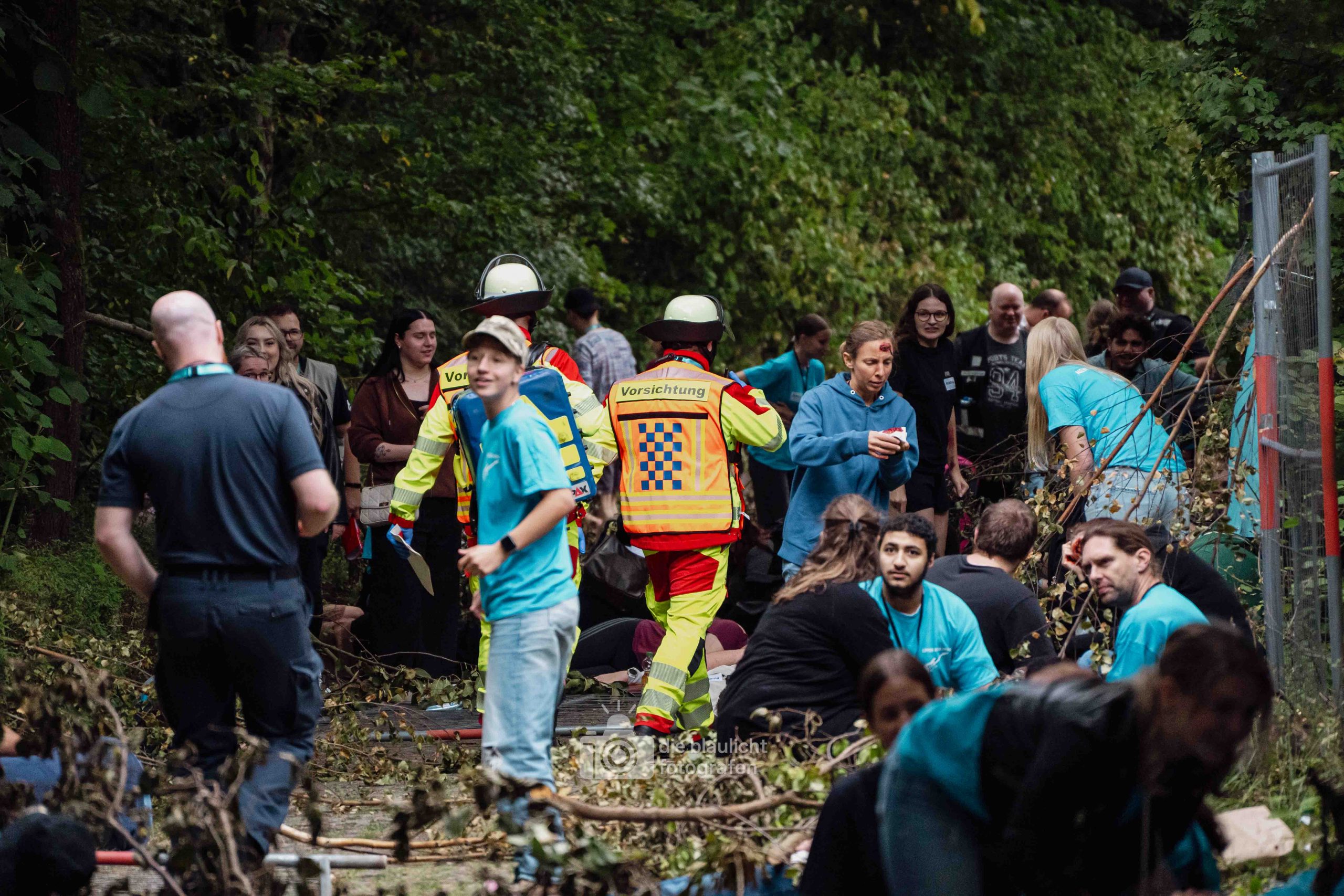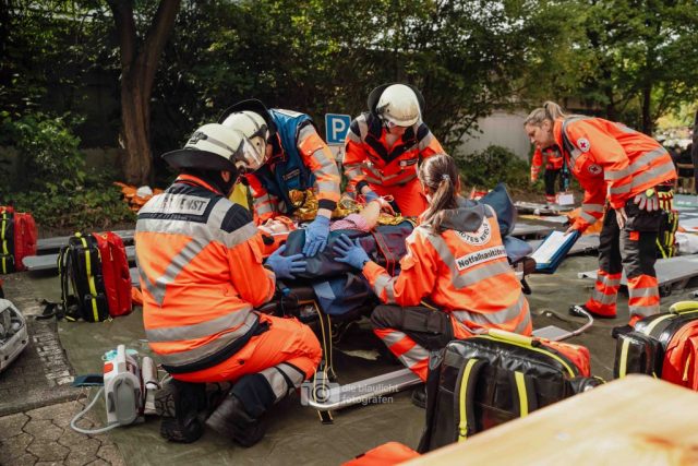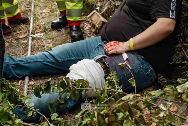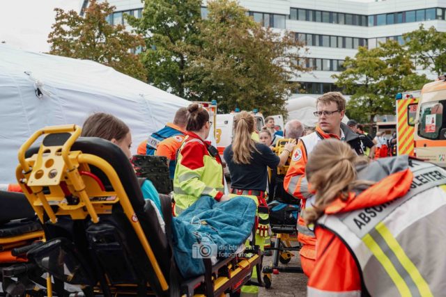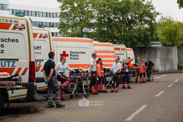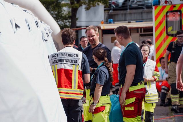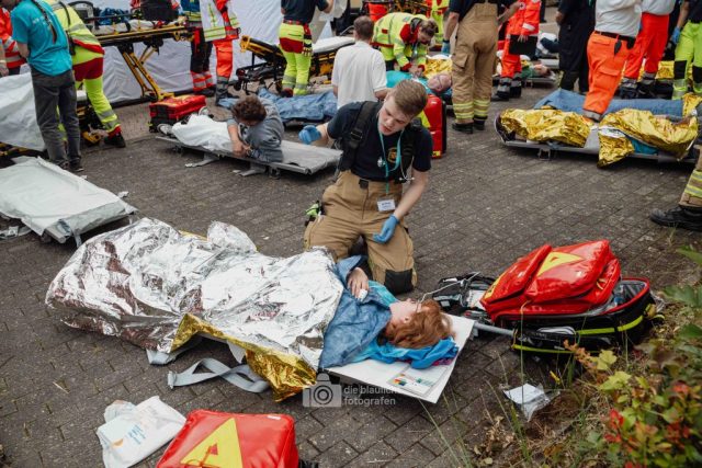 Für Realismus sorgten 80 professionell geschminkte Verletztendarsteller, die Schockzustände, Verbrennungen oder Bewusstlosigkeit nachstellten.