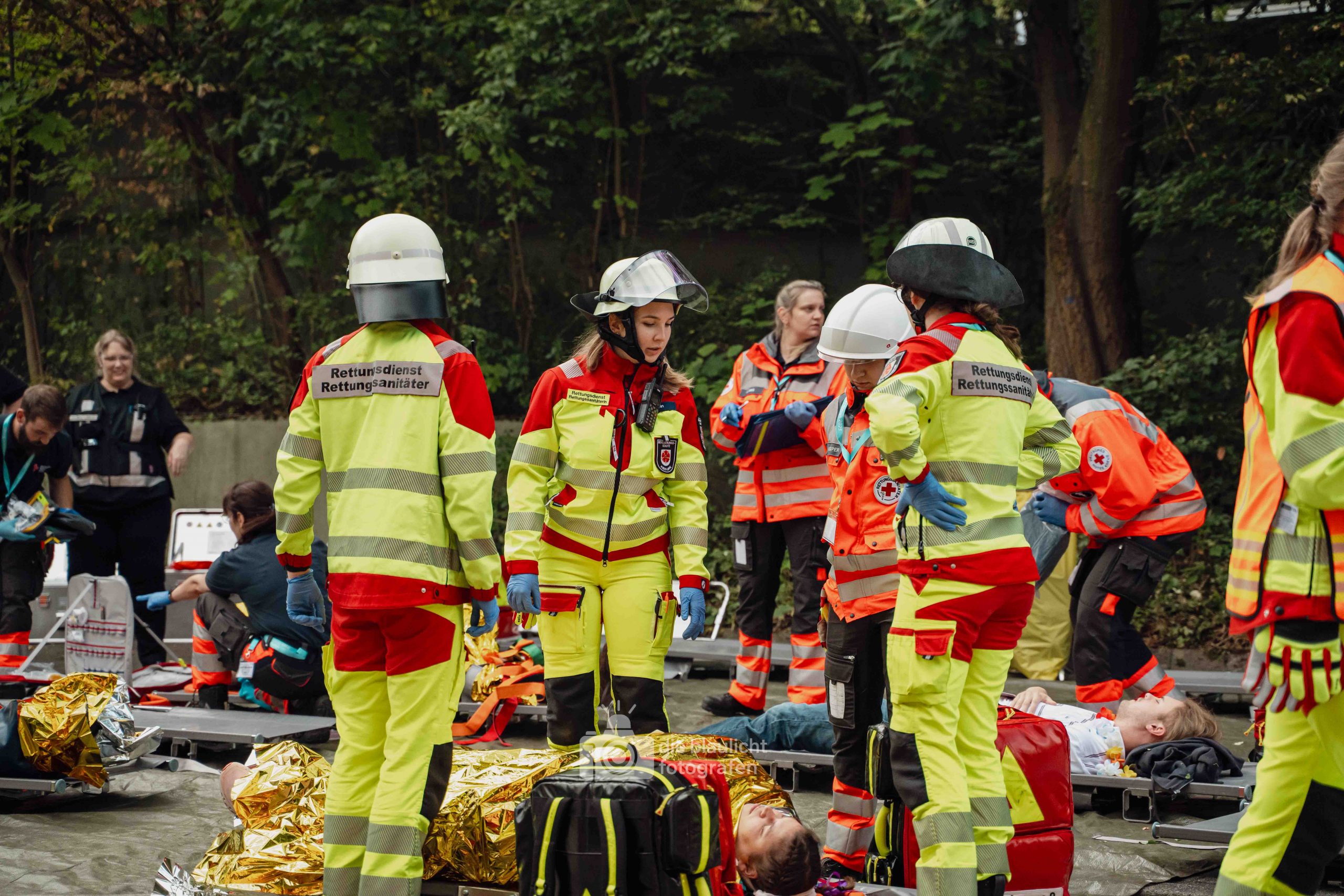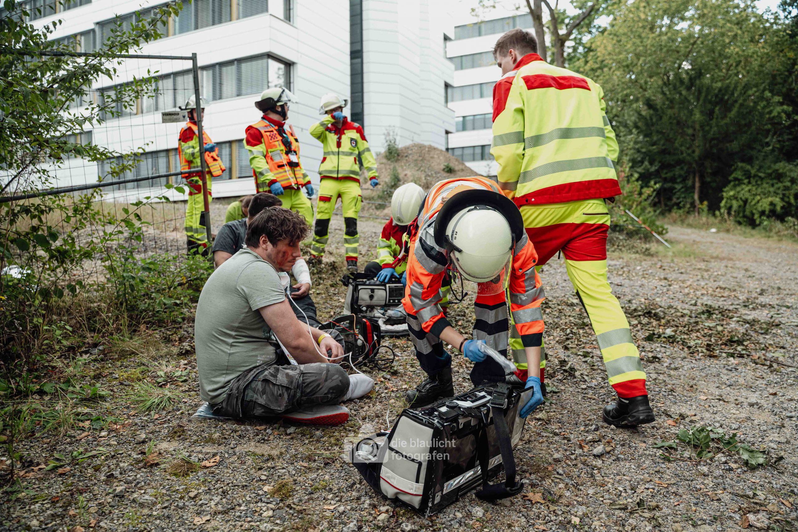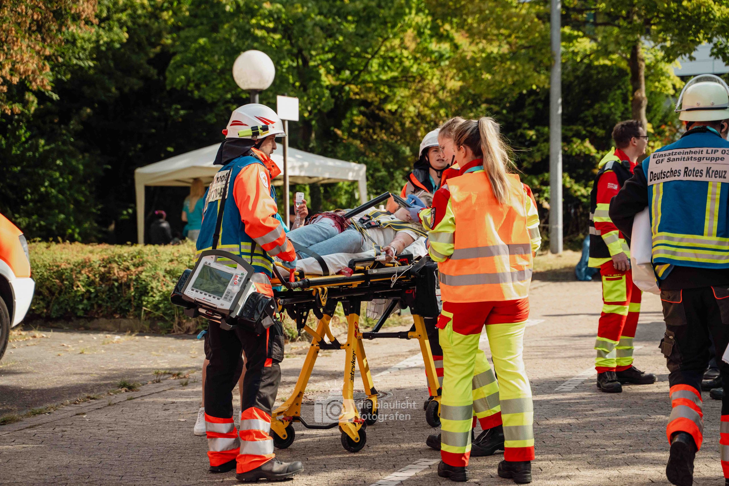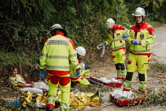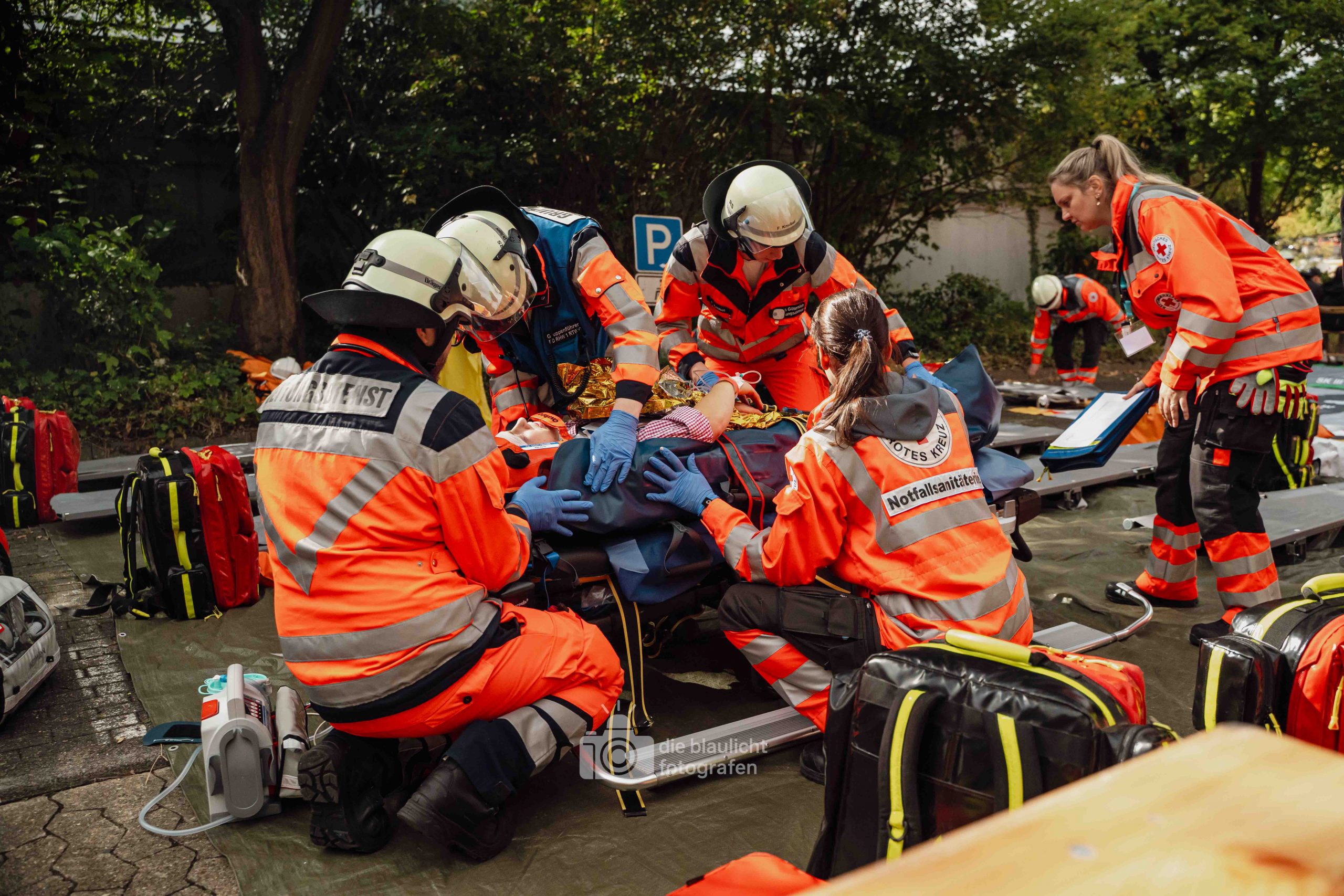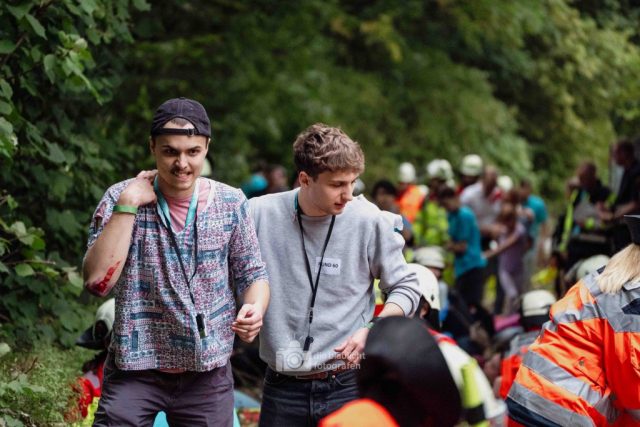 Für Realismus sorgten 80 professionell geschminkte Verletztendarsteller, die Schockzustände, Verbrennungen oder Bewusstlosigkeit nachstellten.
