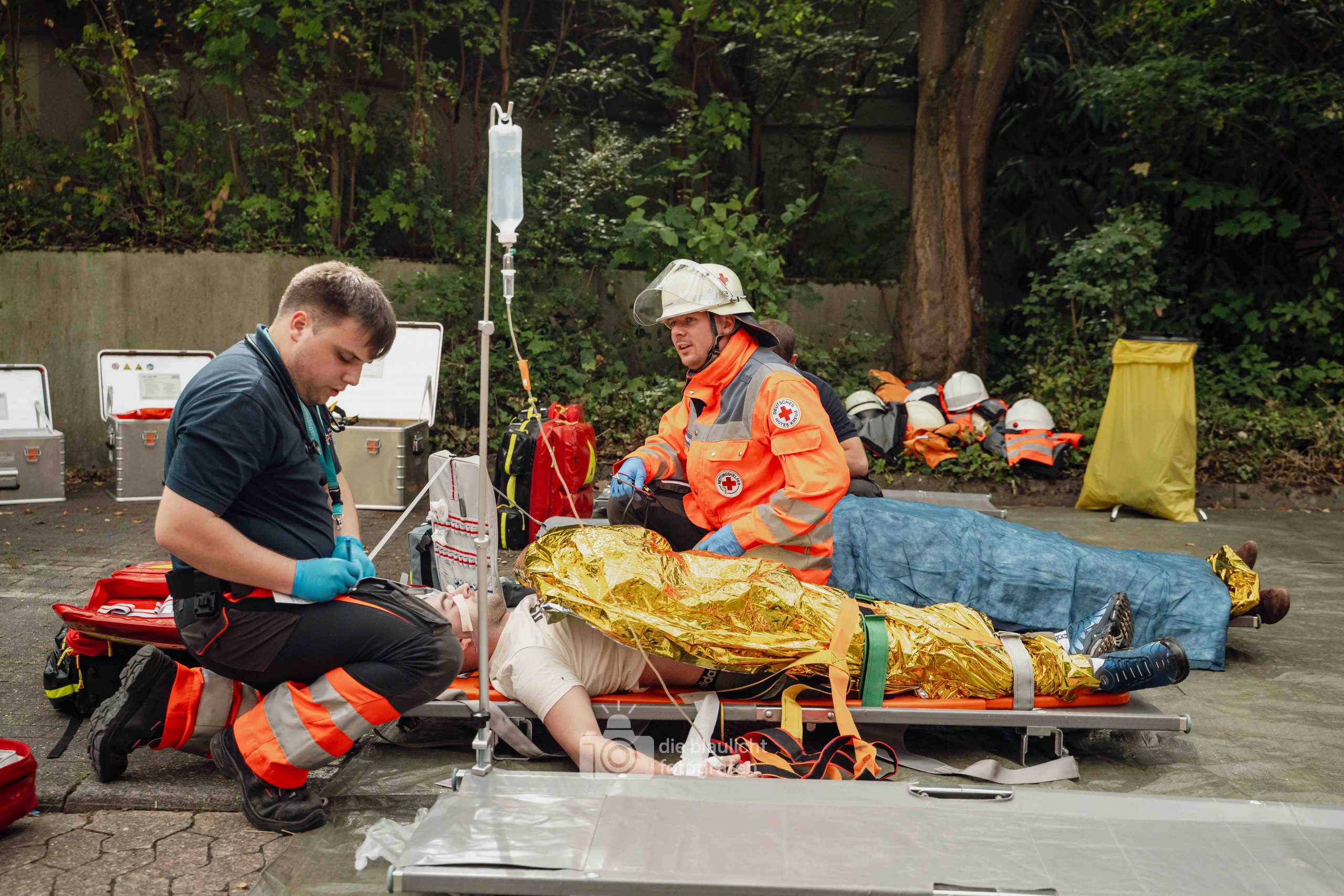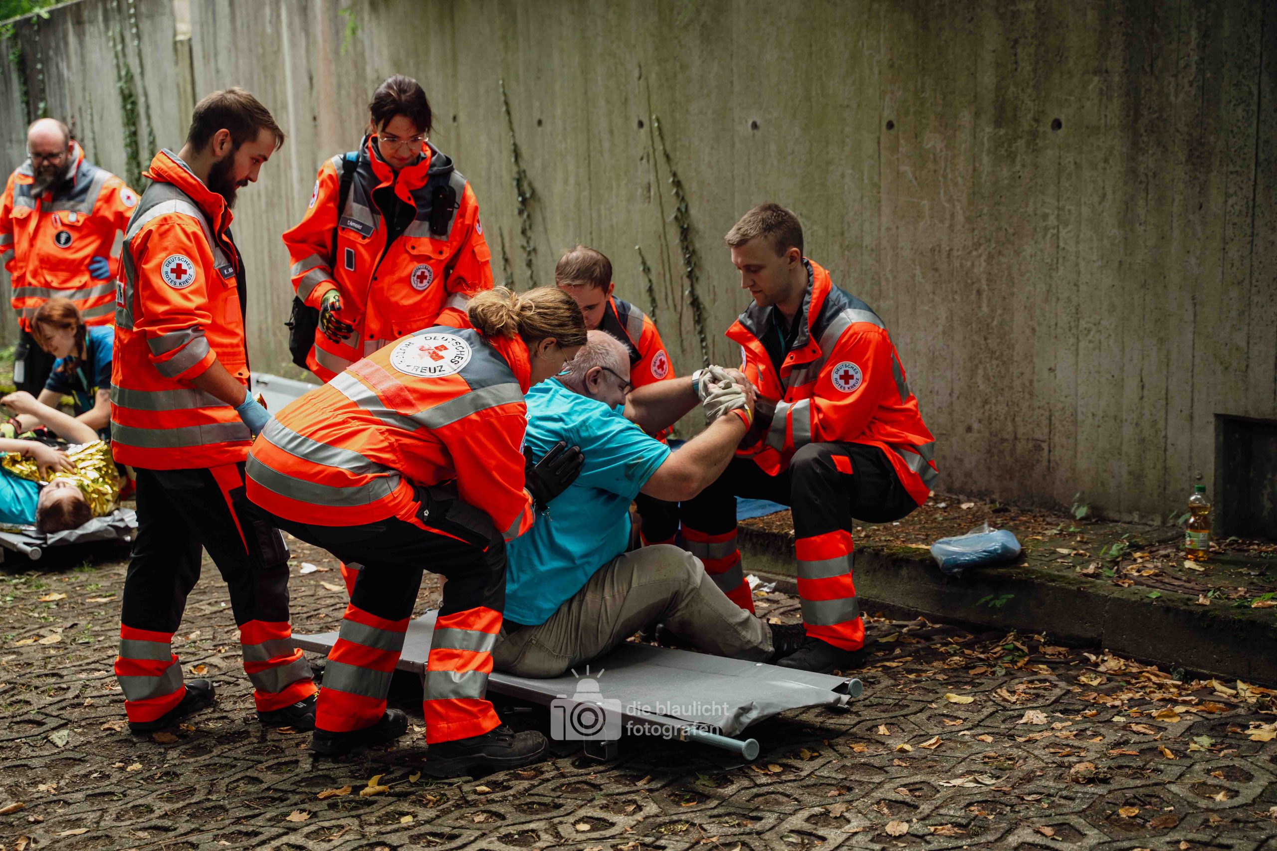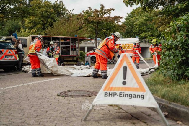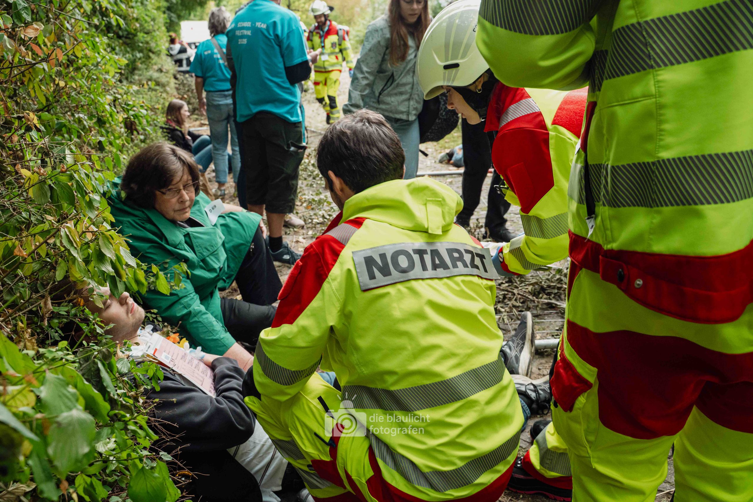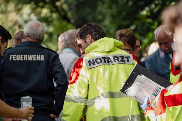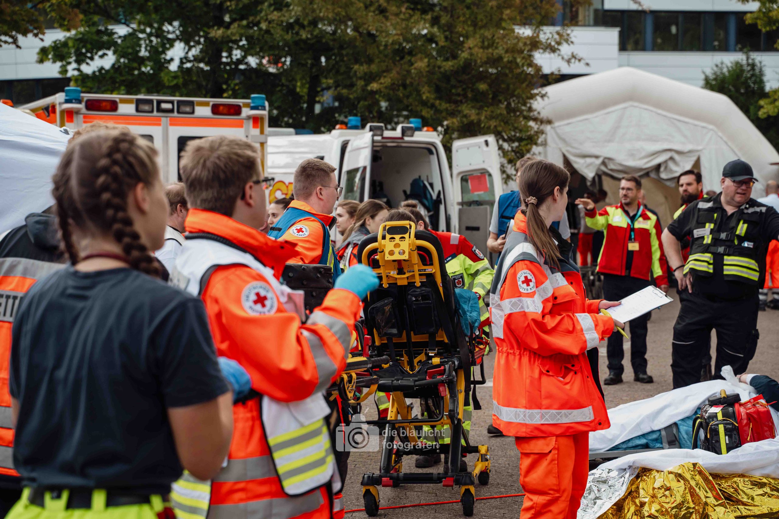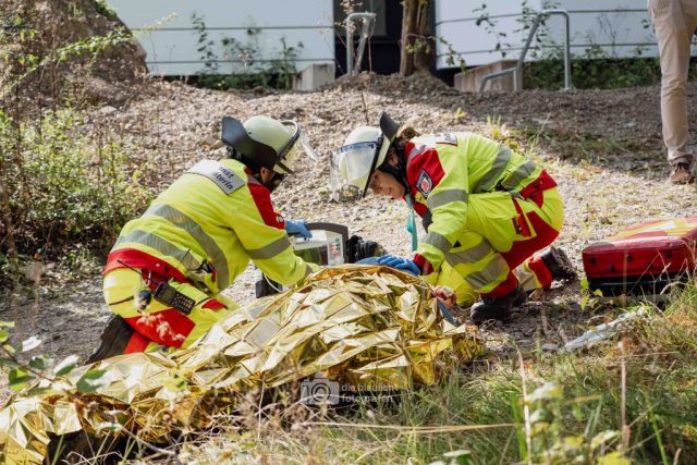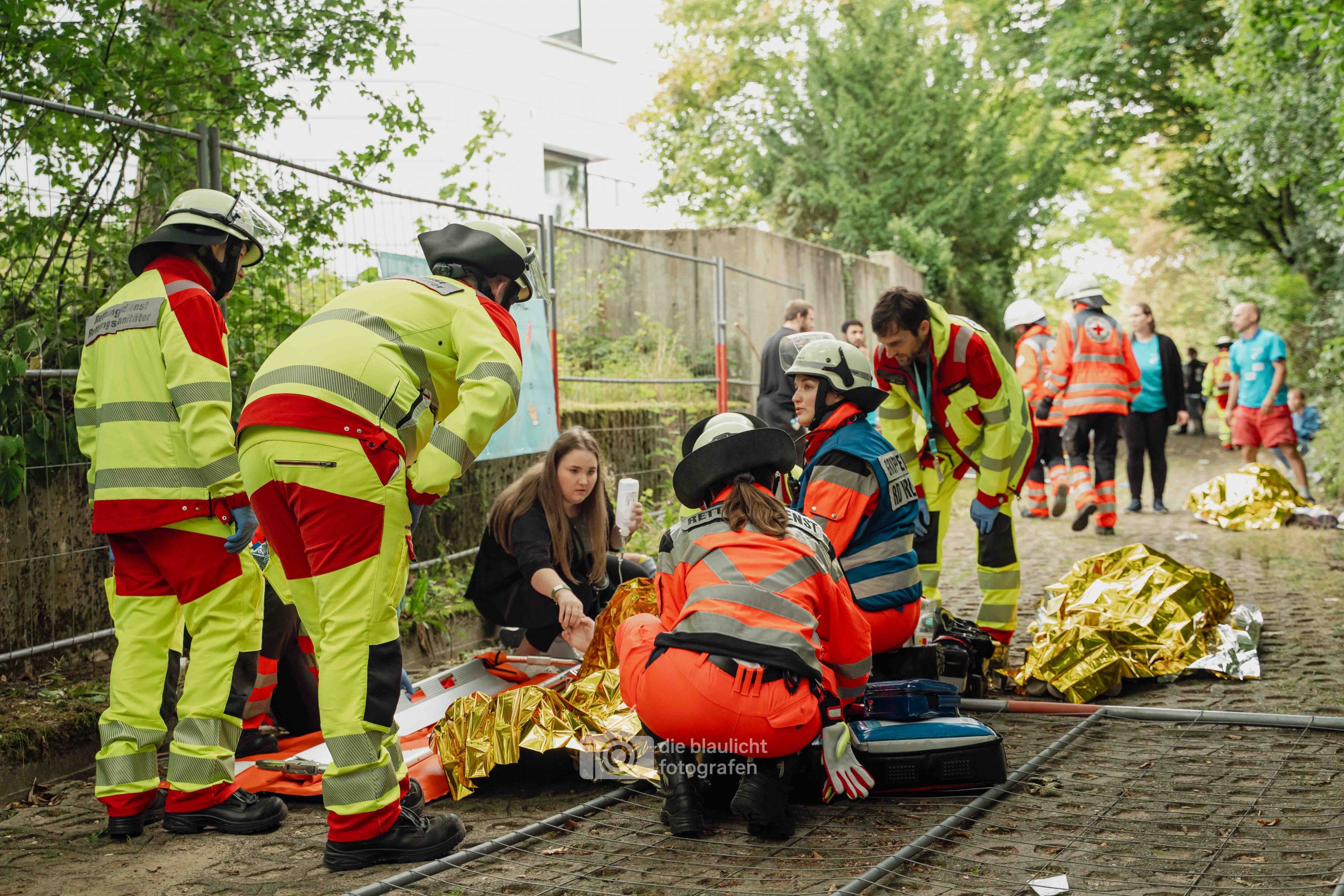 Für Realismus sorgten 80 professionell geschminkte Verletztendarsteller, die Schockzustände, Verbrennungen oder Bewusstlosigkeit nachstellten.