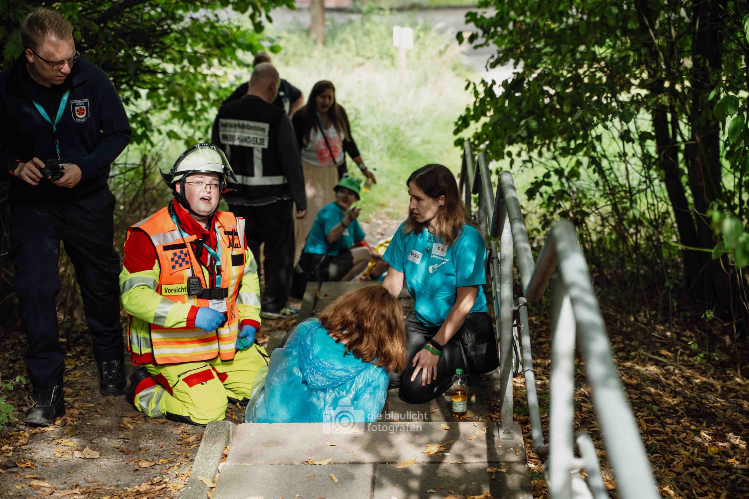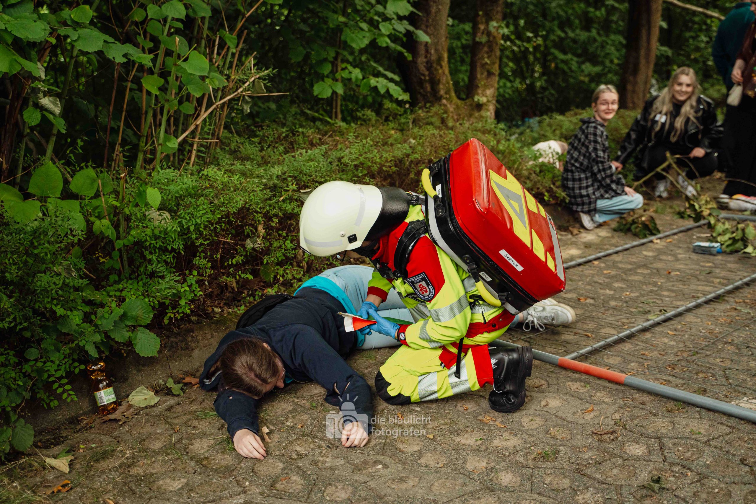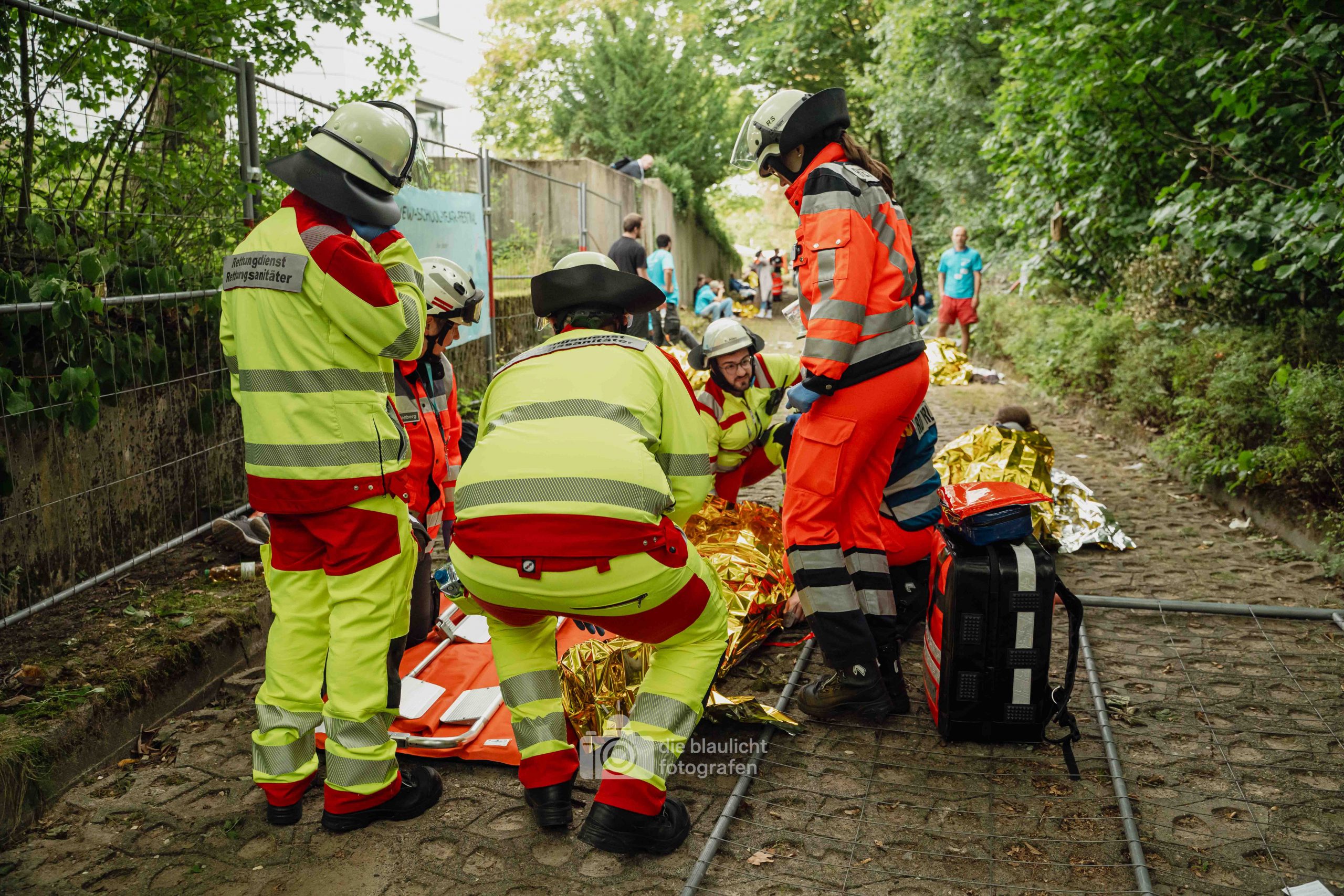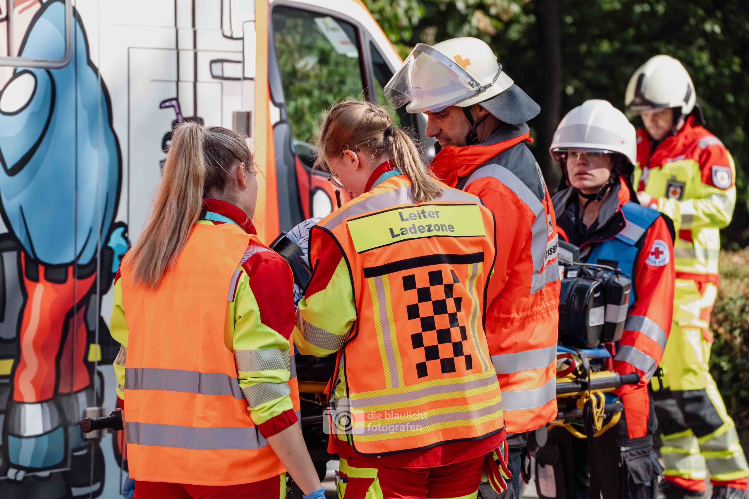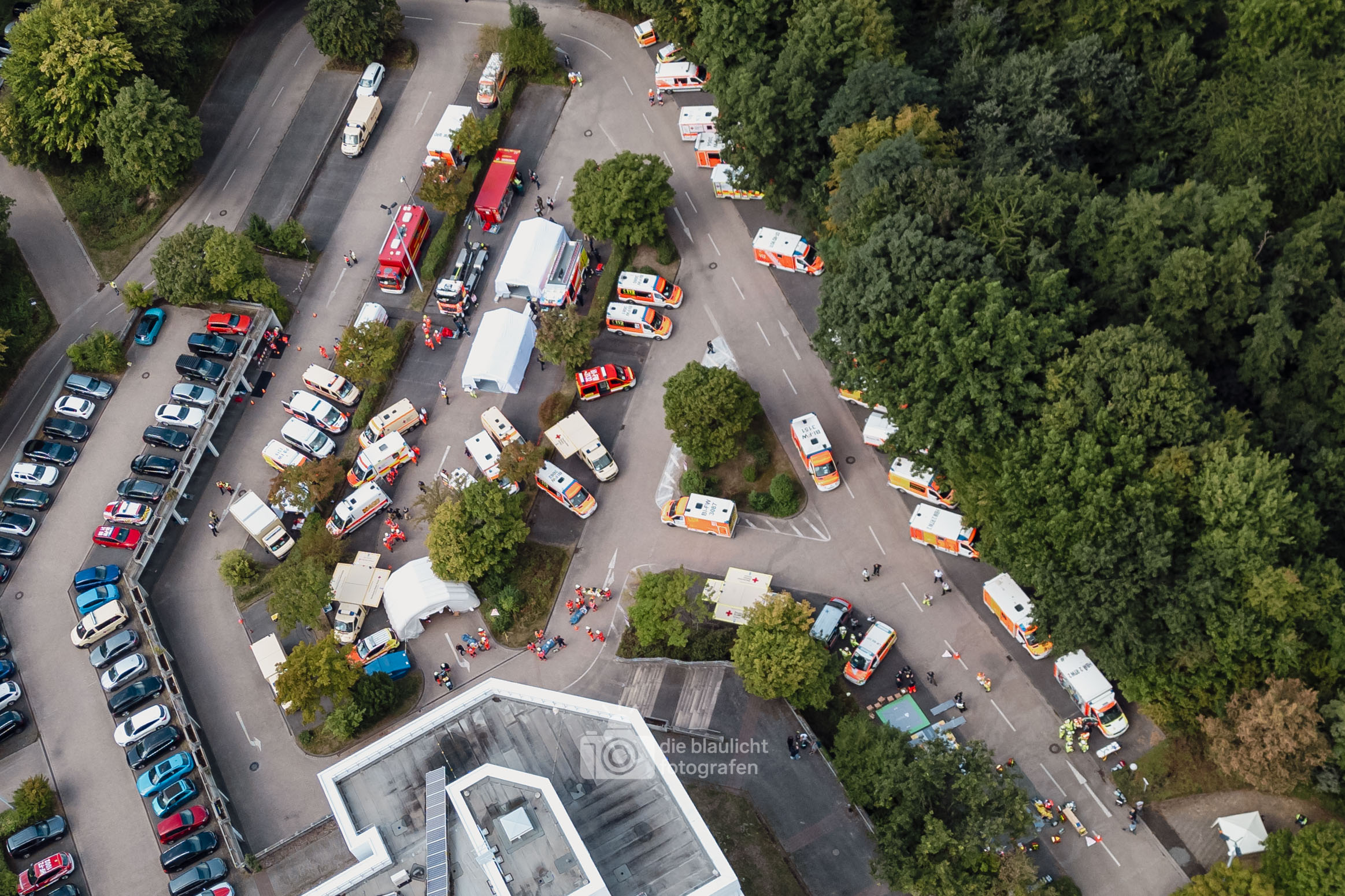 Für Realismus sorgten 80 professionell geschminkte Verletztendarsteller, die Schockzustände, Verbrennungen oder Bewusstlosigkeit nachstellten.