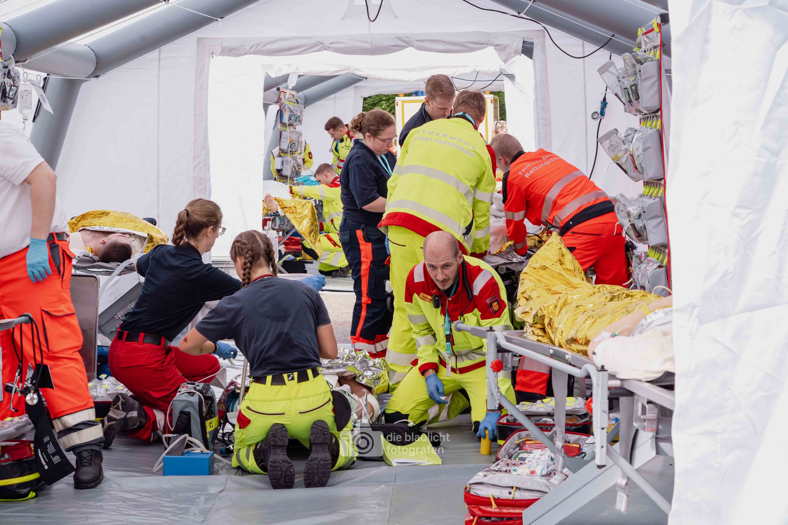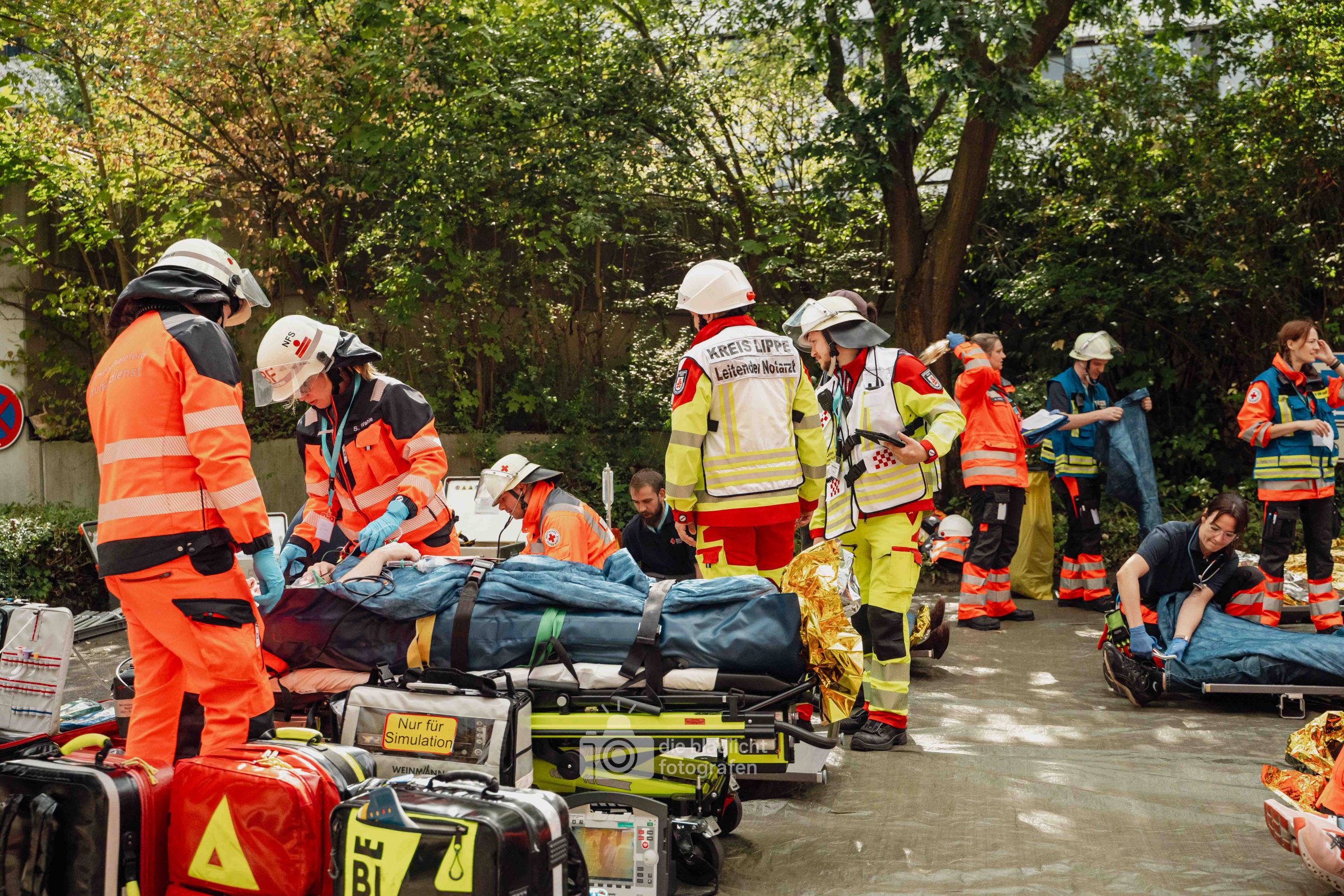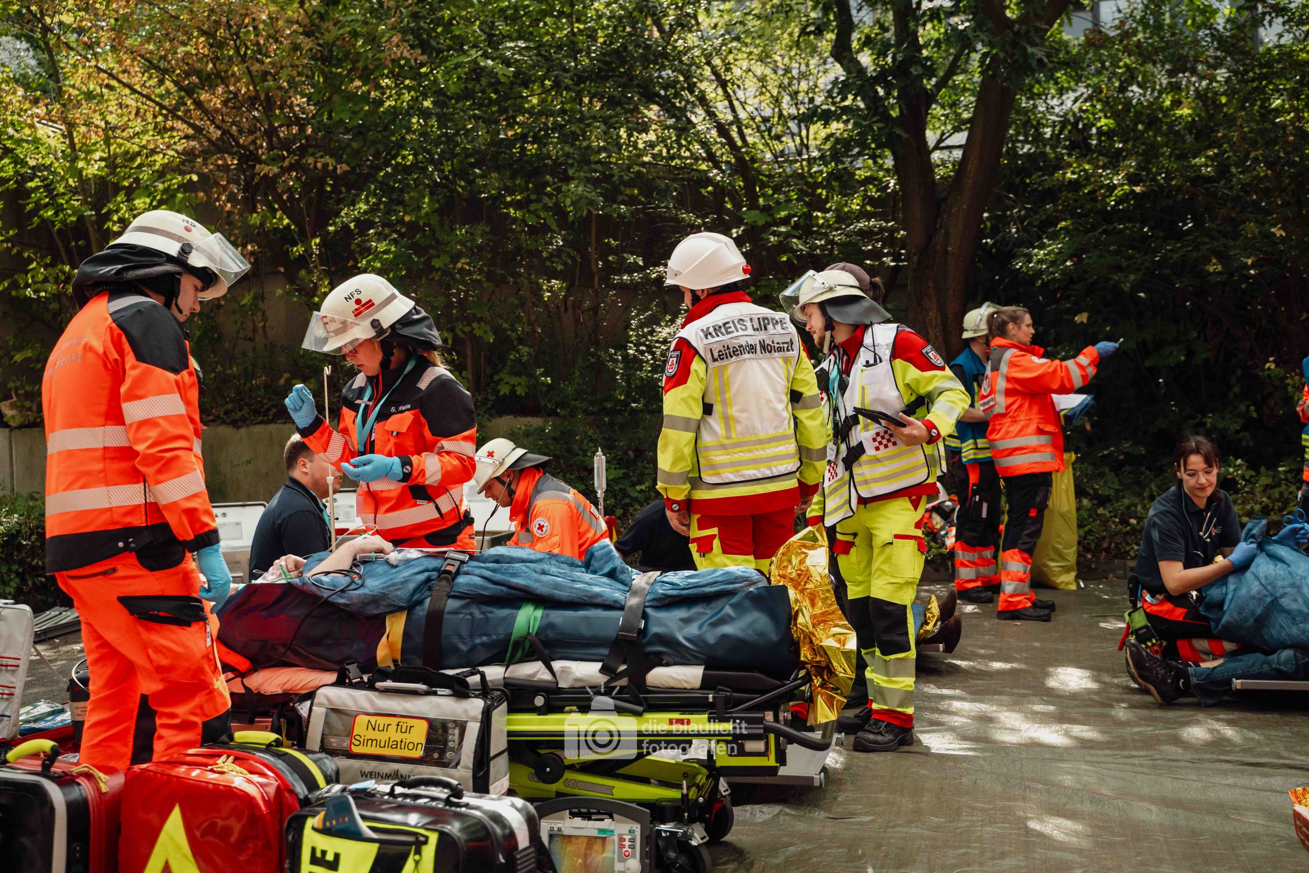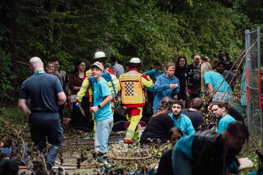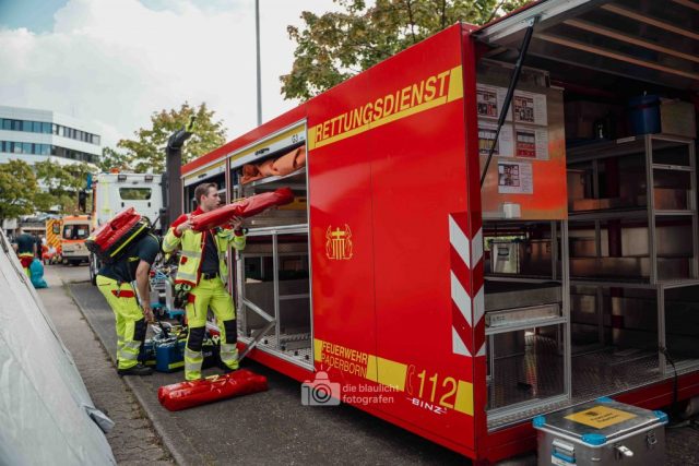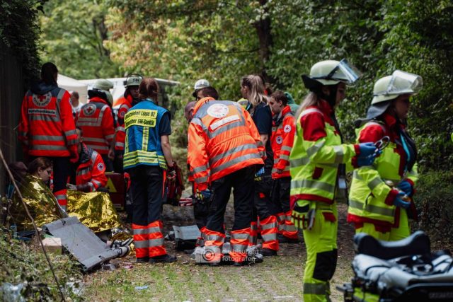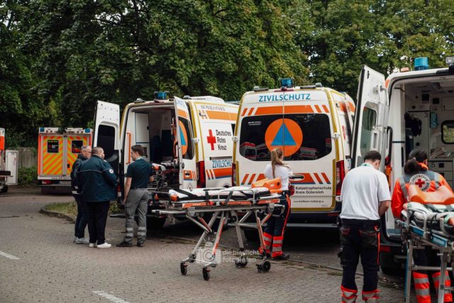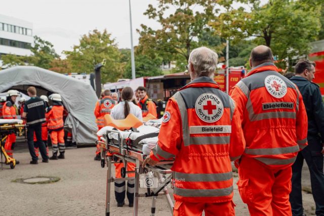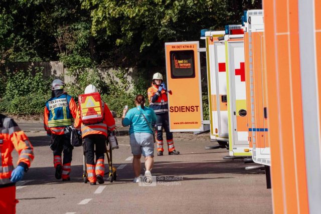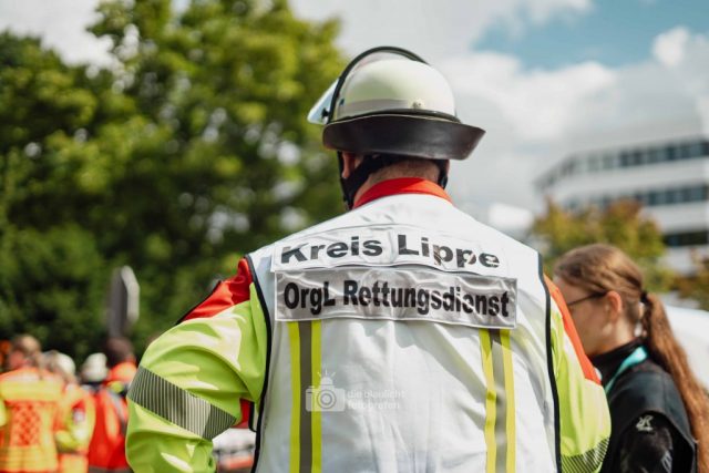 Detmold. Sirenen, Blaulicht und hunderte Einsatzkräfte: Am Samstag hat der Kreis Lippe mit der Großübung „Arminius 2025“ eindrucksvoll den Ernstfall geprobt. Ausgangsszenario war ein Konzert im Hochsommer, das durch ein plötzliches Unwetter mit Blitzeinschlägen in eine Katastrophe mündete. Binnen Minuten waren 160 Menschen verletzt – 80 davon realistisch dargestellt durch ehrenamtliche Mimen.