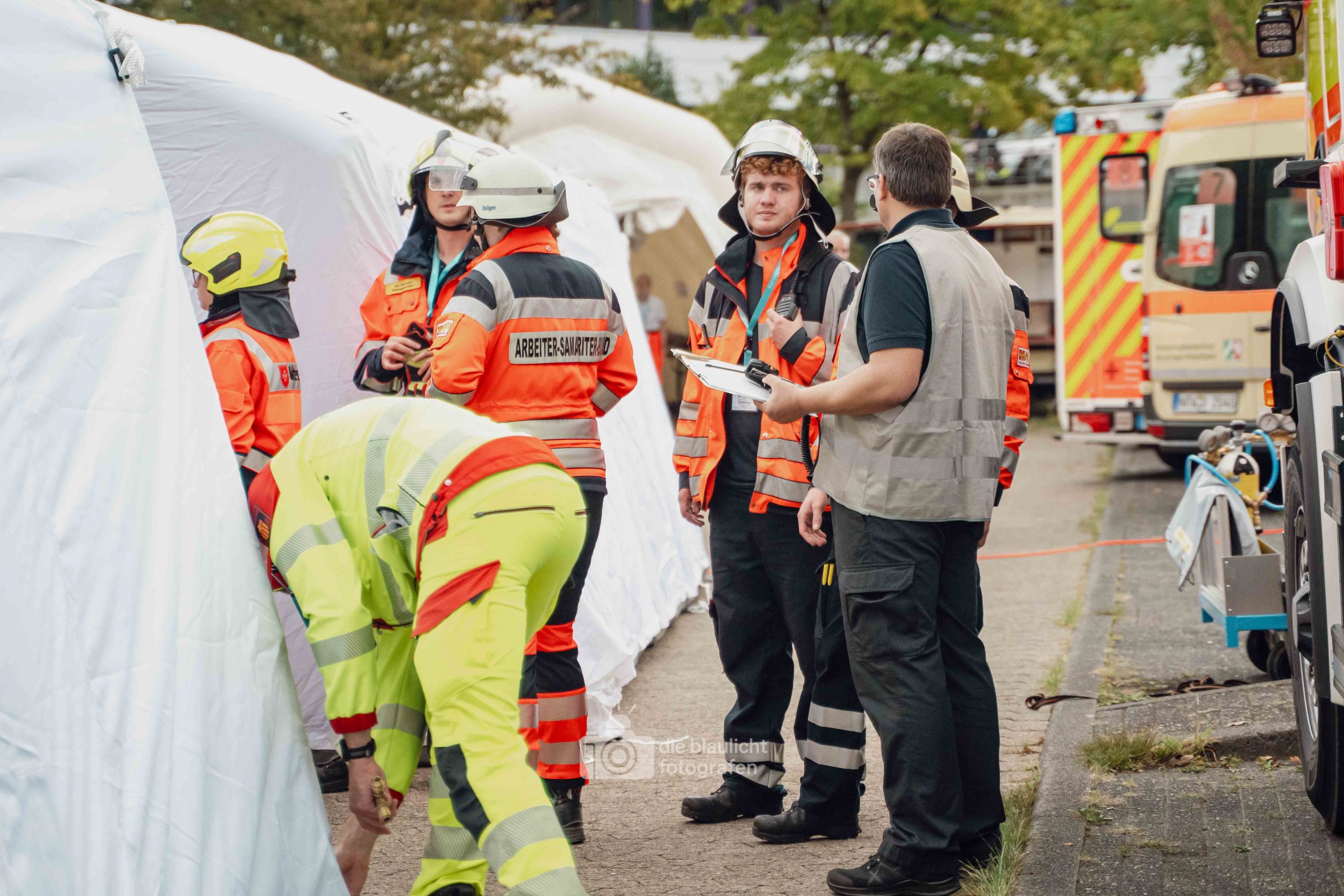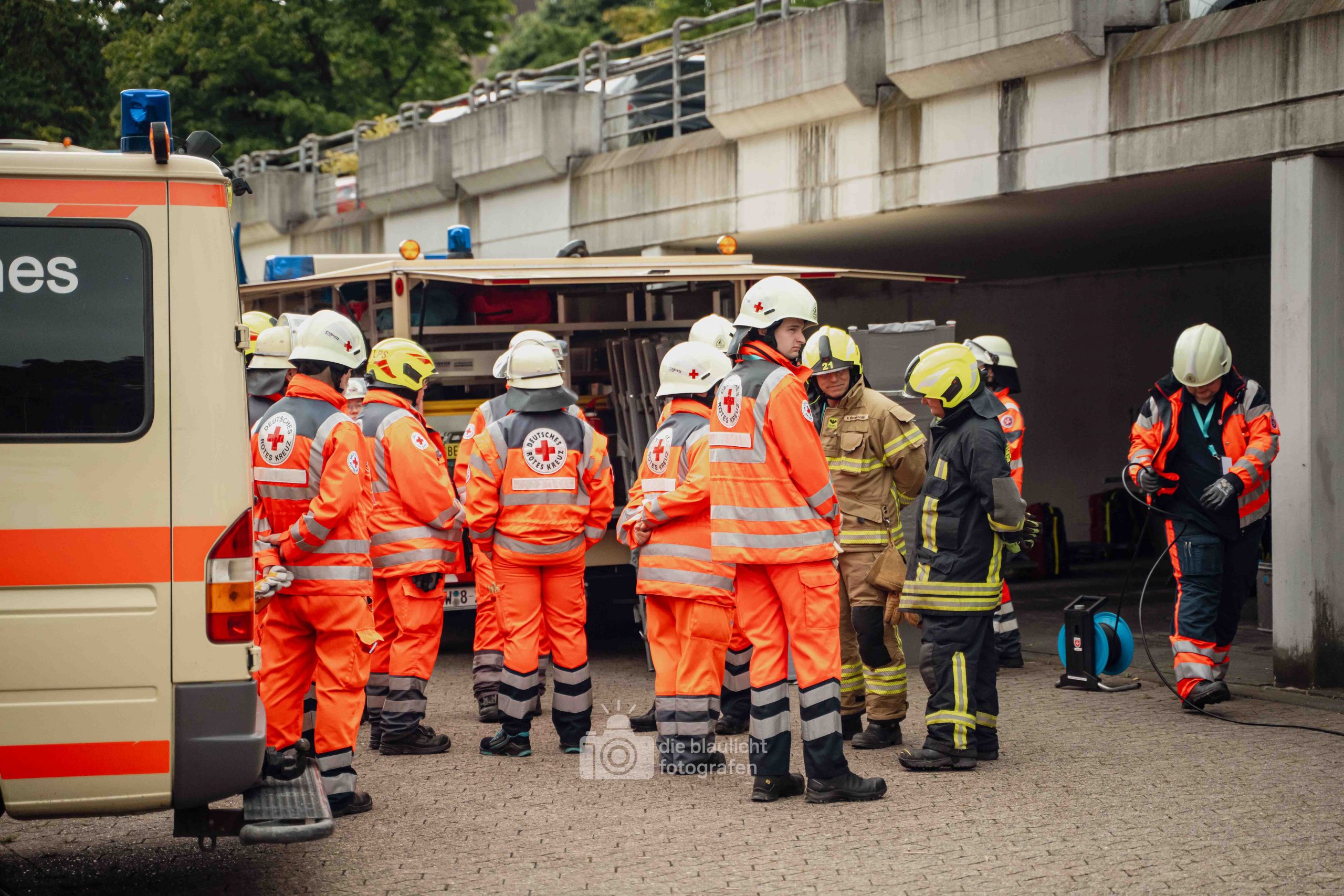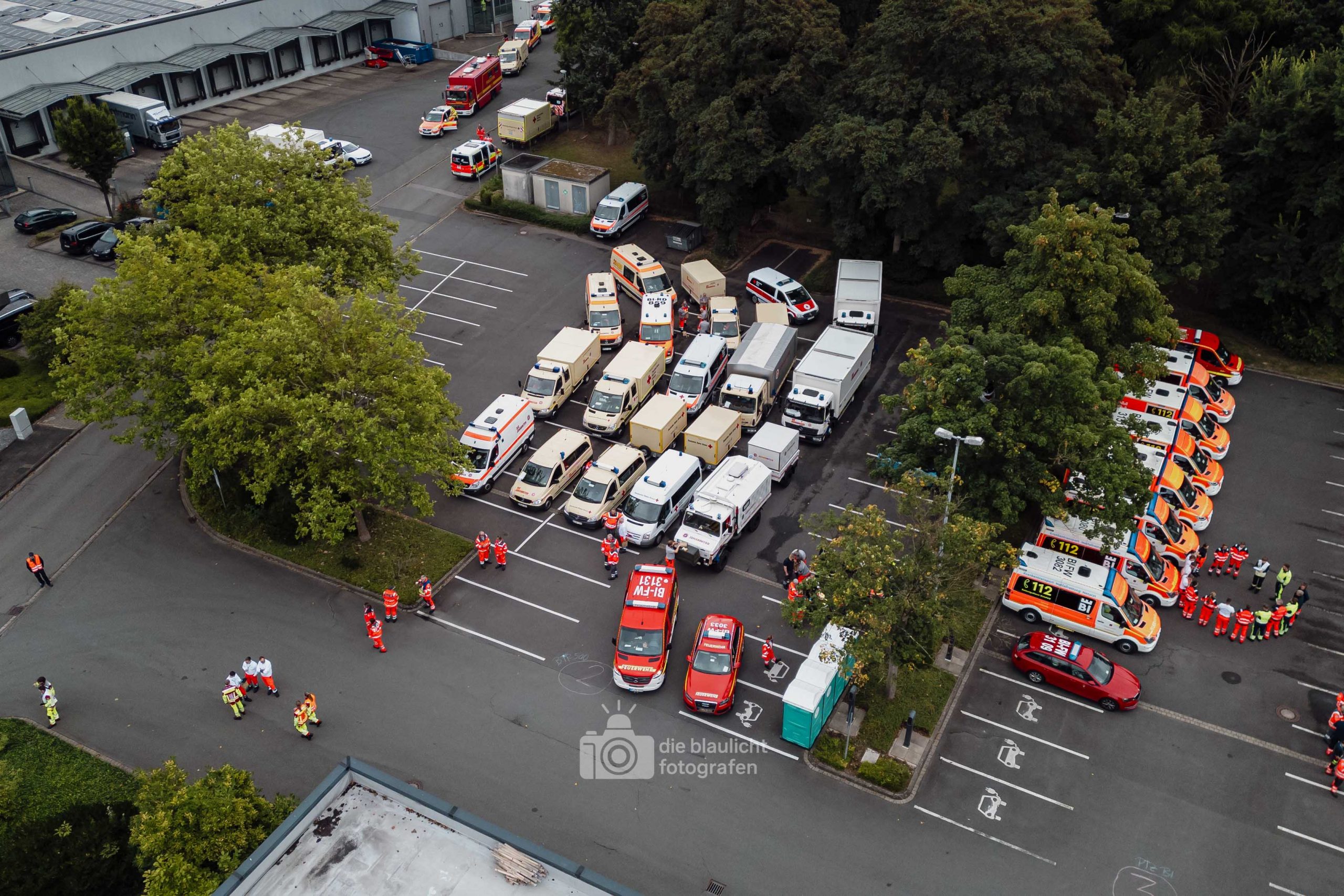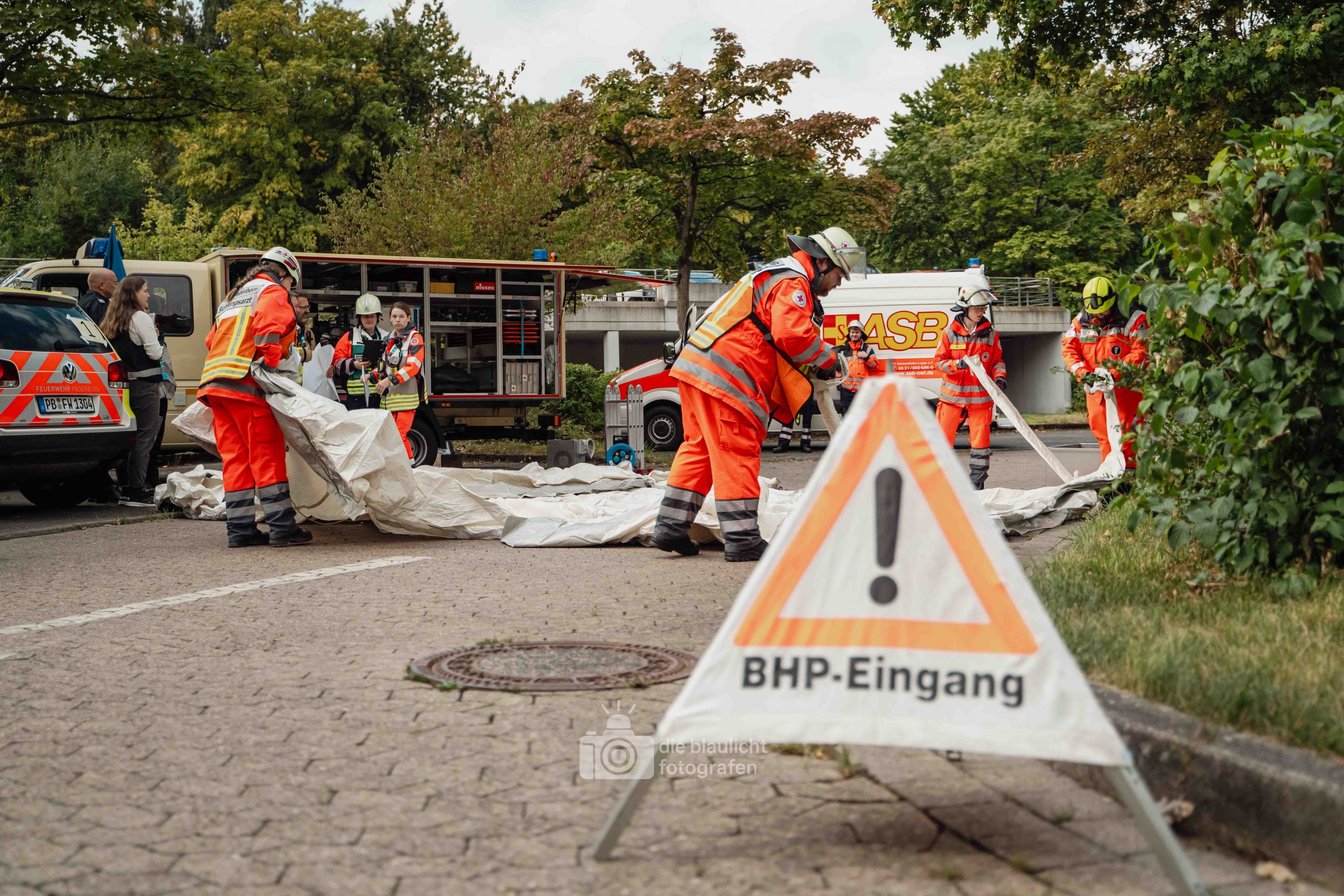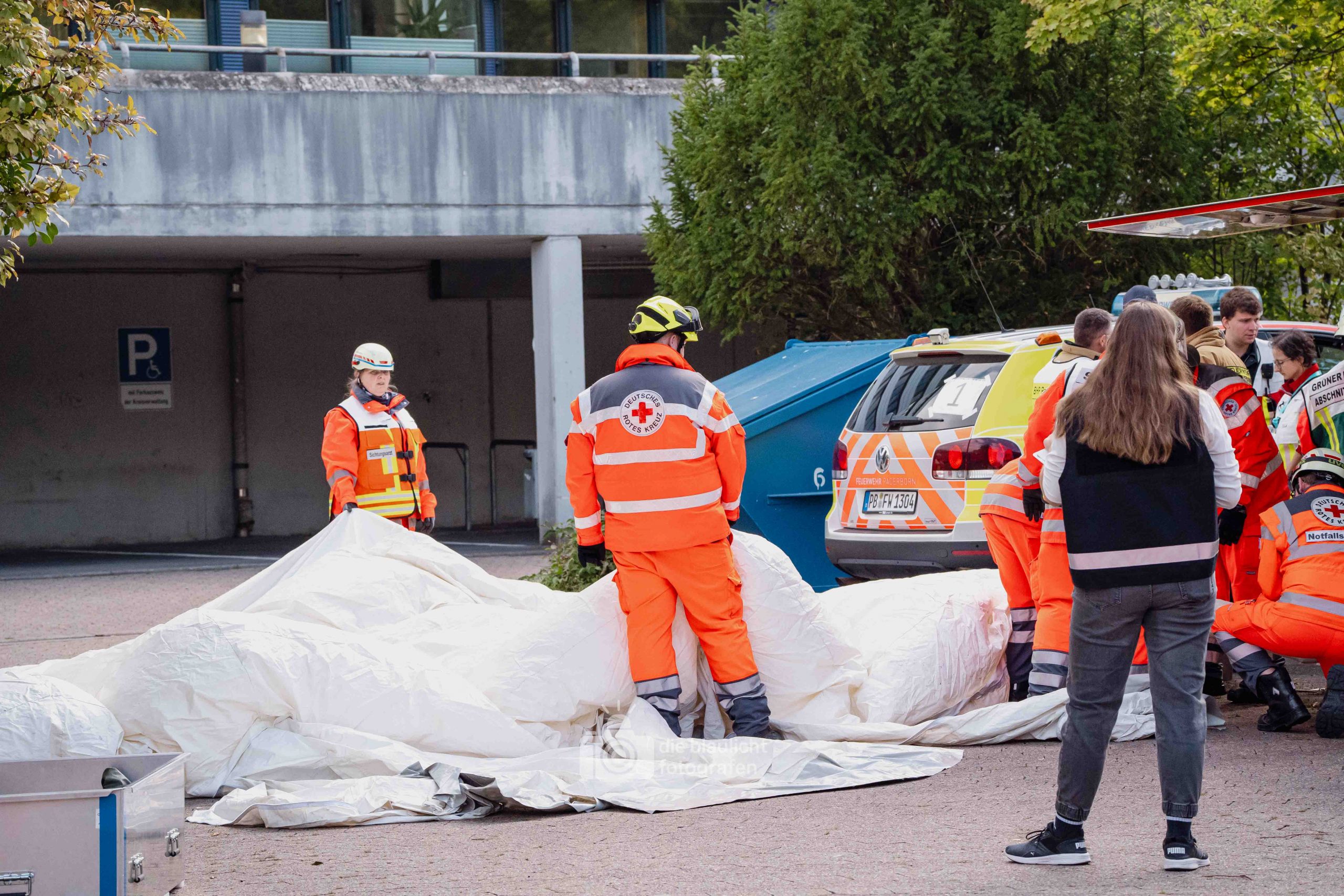 Nach und nach wurden weitere Einheiten alarmiert, darunter die Bereitschaften aus Paderborn und Bielefeld, die mit ihren Spezialmodulen – dem Behandlungsplatz 50 und dem Betreuungsplatz 500 – die Einsatzstelle ergänzten. Hierbei handelt es sich um Landeskonzepte des Katastophenschutzes NRW, die für die Behandlung und Versorgungen einer großen Anzahl von Verletzten und betroffen vorgesehen sind. Nach den Konzepten des Landes Nordrhein-Westfalen werde solche Konzepte überregional entsandt. So wuchs das Geschehen binnen kurzer Zeit von einer überschaubaren Rettungslage zu einem groß angelegten Katastropheneinsatz mit hunderten Beteiligten.