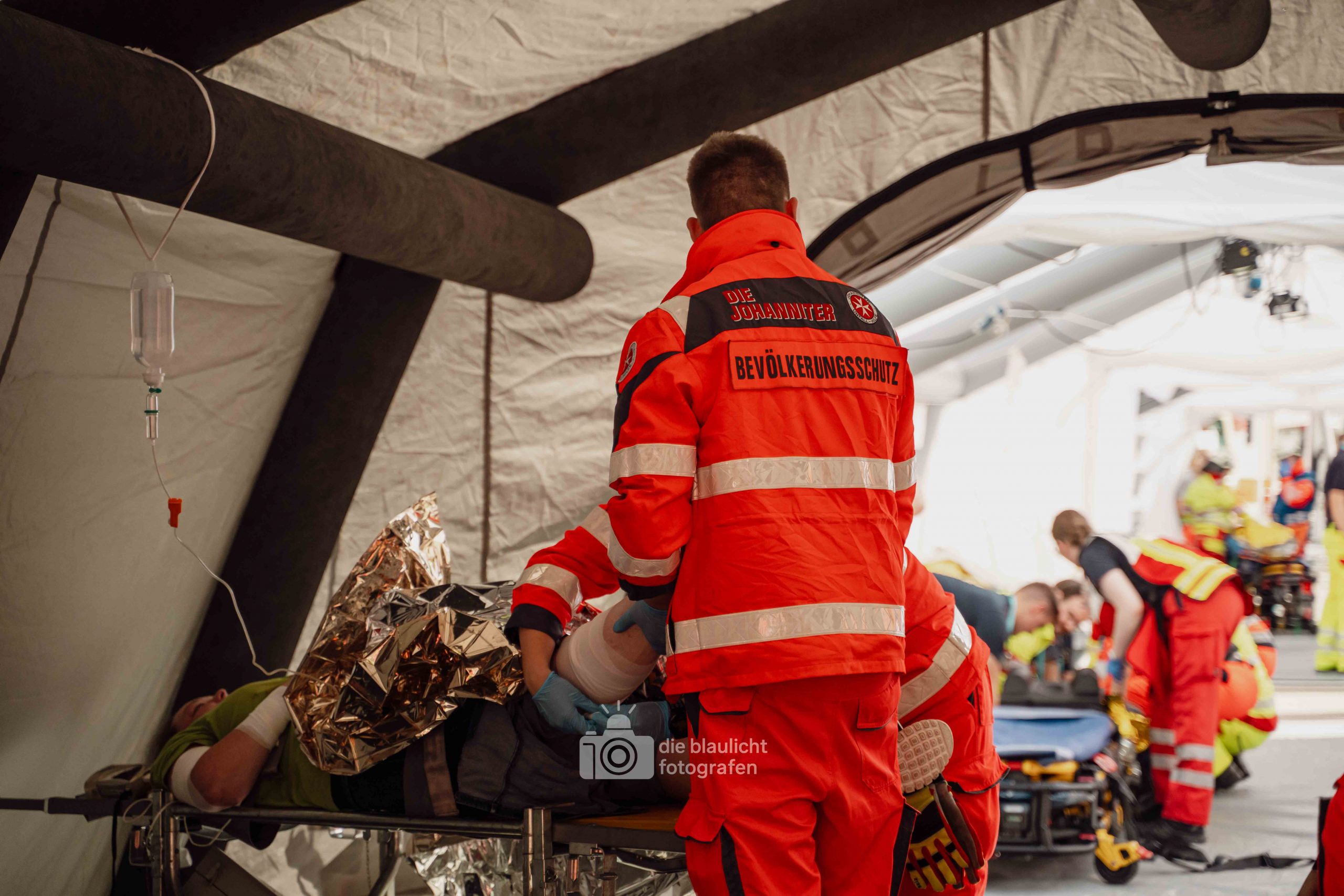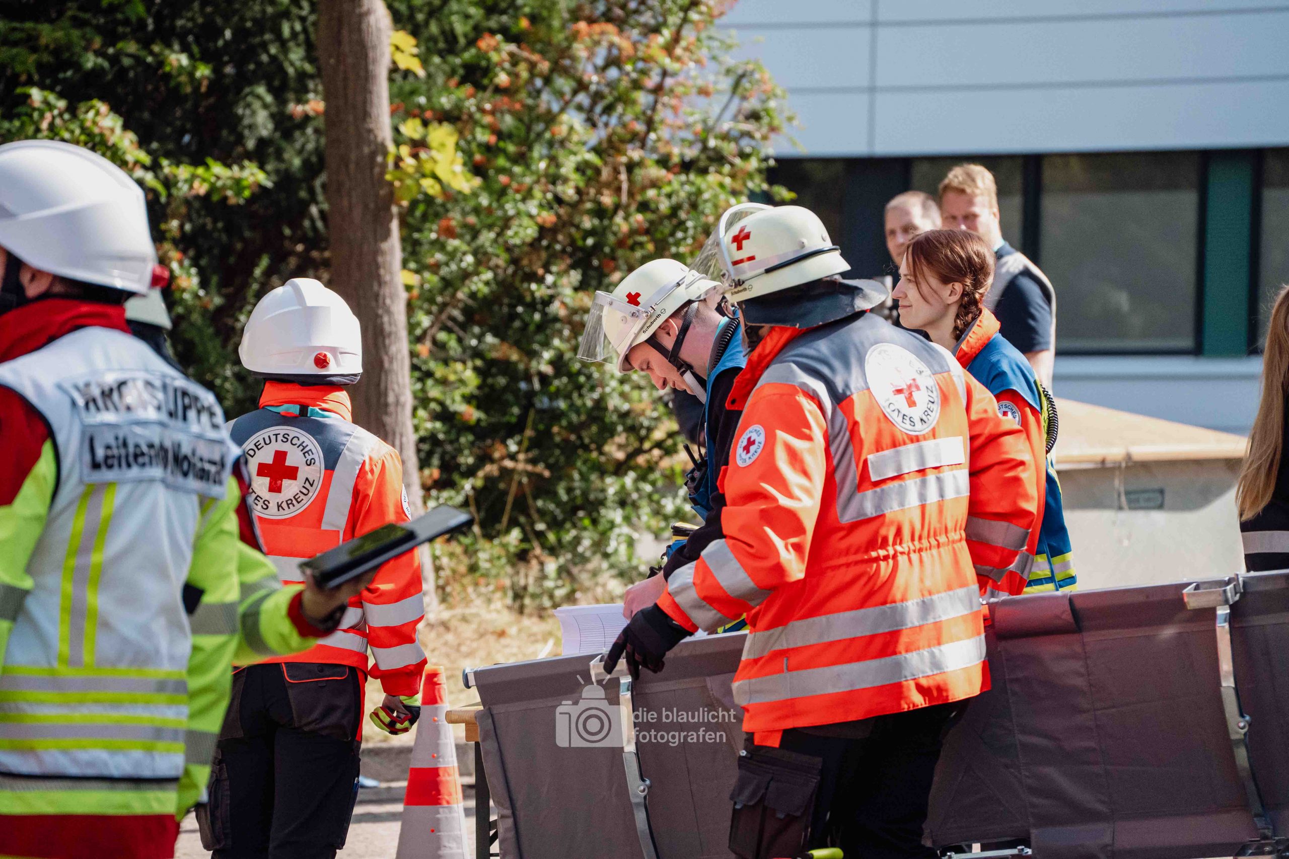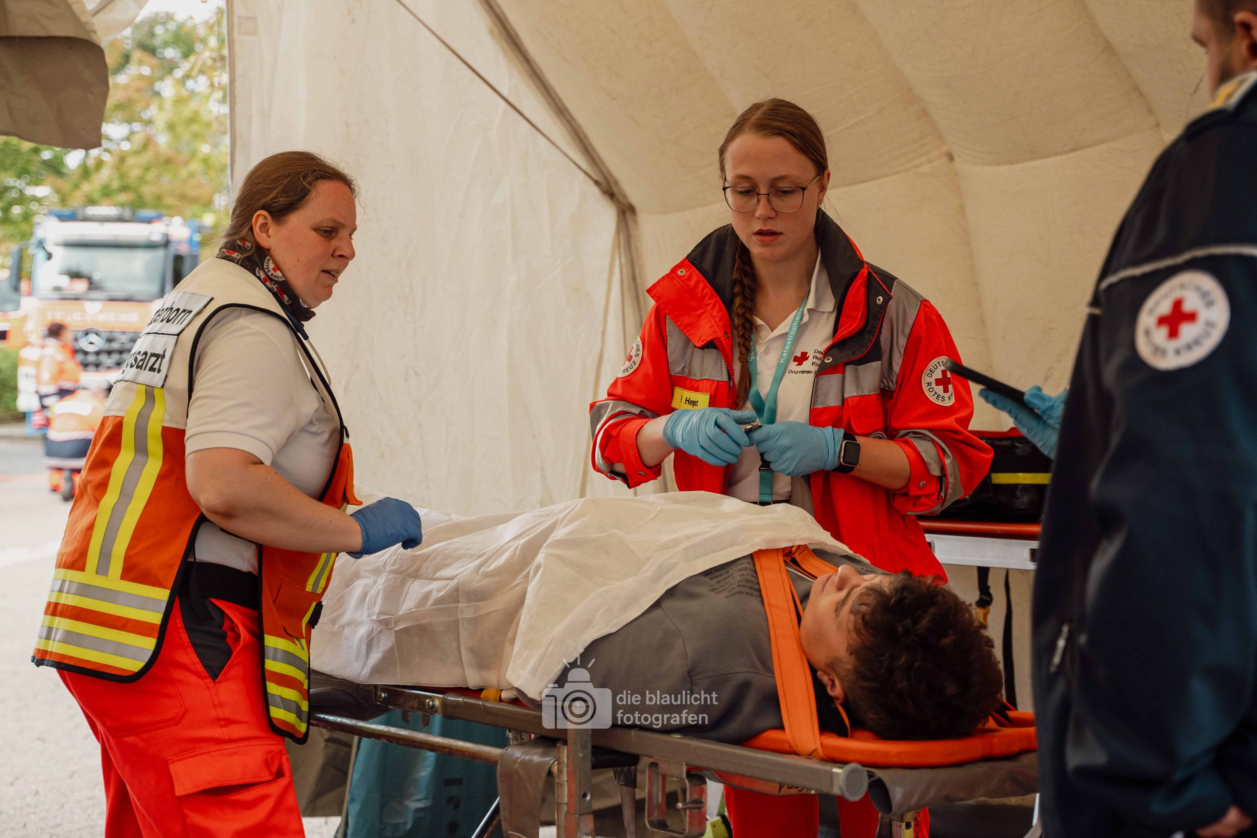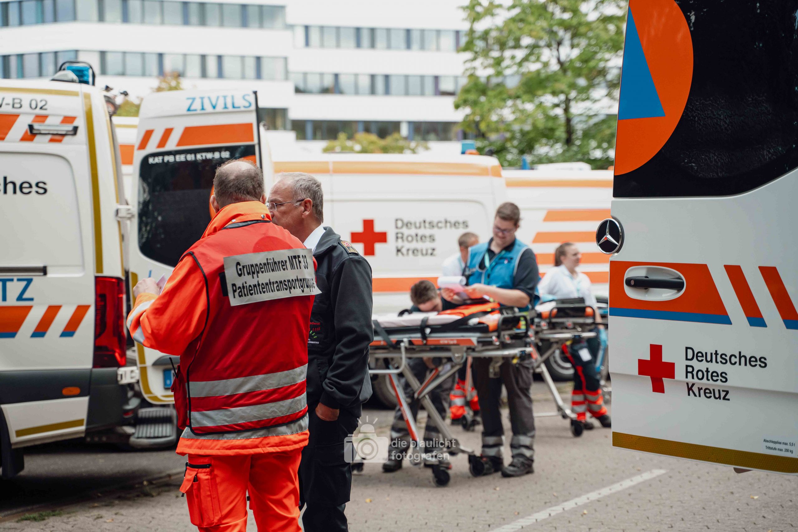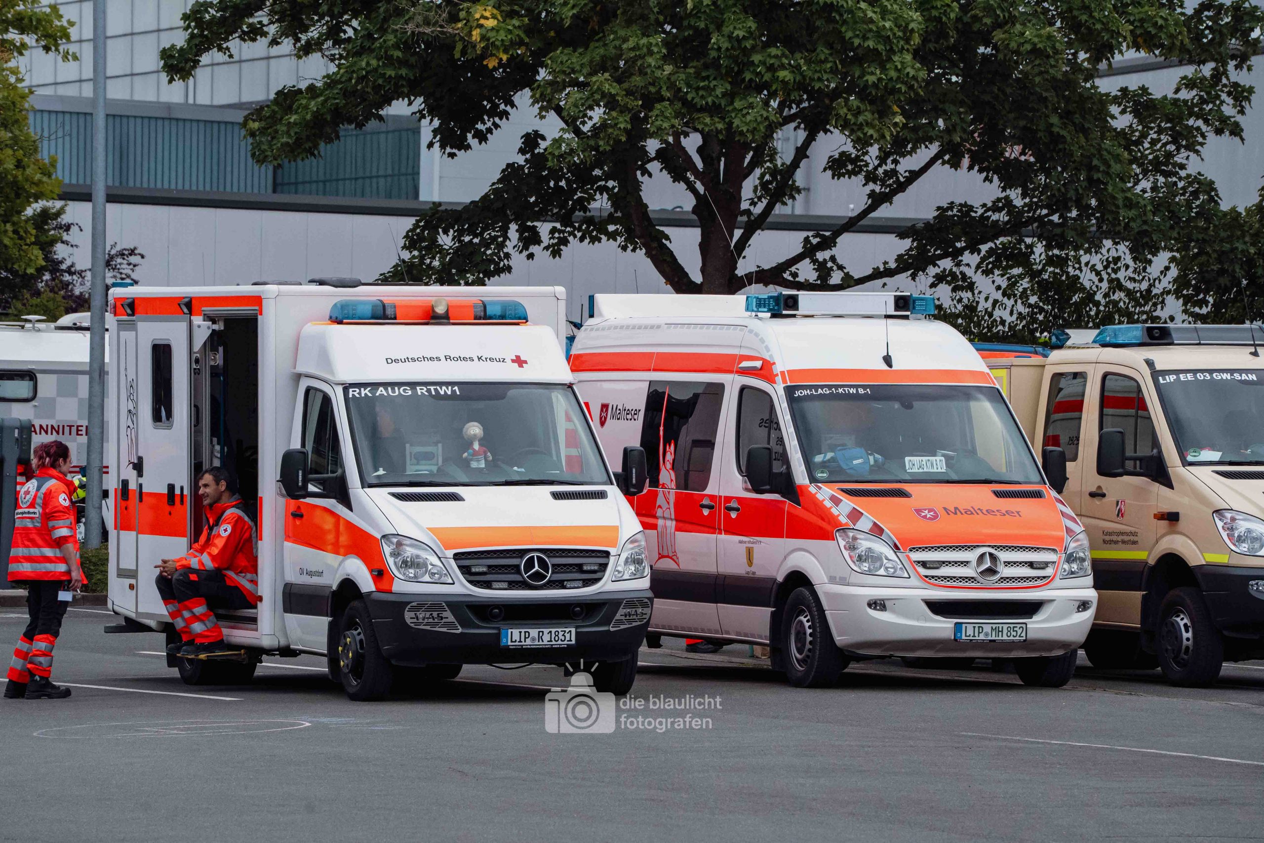Auf den Parkplätzen rund um das Kreishaus entstanden Behandlungszelte und Sichtungsbereiche. Die Behandlungsplatz-Bereitschaft 50 aus Paderborn übernahm die medizinische Versorgung, während die Betreuungsplatz-Bereitschaft 500 aus Bielefeld die unverletzten Betroffenen registrierte, betreute und versorgte. Unterstützt wurden sie dabei von der Betreuungsstaffel des Malteser-Hilfsdienstes und einem Team für Psychosoziale Notfallversorgung (PSNV) aus dem Kreis Lippe. Schritt für Schritt wurde das Szenario nach Plan abgearbeitet – modular, koordiniert und praxisnah.