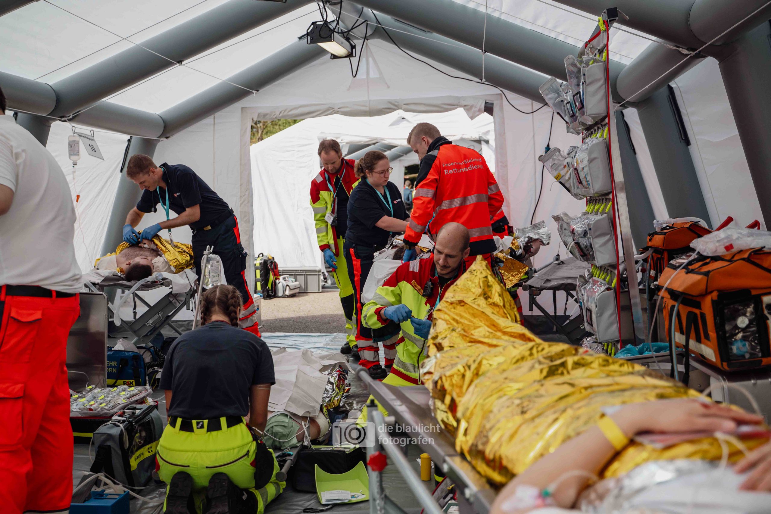 Die Kliniken in Detmold und Lemgo wurden parallel eingebunden: Erste Schwerverletzte wurden nach Detmold transportiert, mittelschwer und leicht Verletzte nach Lemgo. „Wir haben unseren Krankenhausalarm- und Einsatzplan bei einem Massenanfall von Verletzten unter Realbedingungen getestet“, erklärte Klinik-Sprecher Christian Ritterbach. Für das Klinikum Lippe war es die umfangreichste Katastrophenschutzübung seiner Geschichte. Auch die Krankenhäuser in Herford und Gütersloh beteiligten sich und waren Ziel der Patiententransportgruppen der Medizinischen Task Force. An den Krankenhaustüren endete dort allerdings das Szenario.