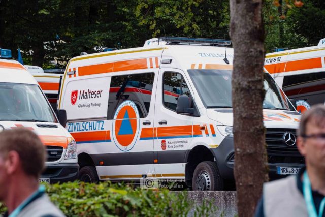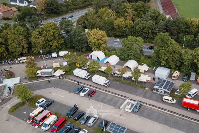Für die Verpflegung sorgten die Küchen Teams vom Deutschen Roten Kreuz und der Johanniter Unfall Hilfe die mit mobilen Küchen, ebenfalls live vor Ort für hunderte Helferinnen und Helfer frisch kochten.