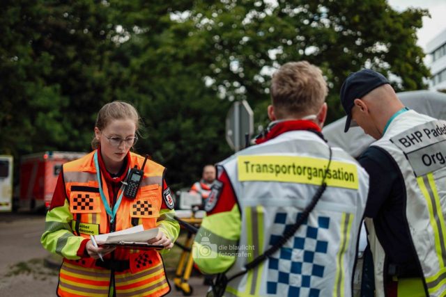 Noch bevor die ersten Behandlungen beginnen konnte, mussten die Opfer gesichtet und kategorisiert werden: Wer braucht sofortige Hilfe, wer kann warten, wer ist nicht mehr zu retten? Nachdem die ersten Kräfte ihre Lage an die Leitstelle gemeldet hatten, setzte sich das gesamte Konstrukt zur Abarbeitung eines Massenanfalls von Verletzten in Bewegung.